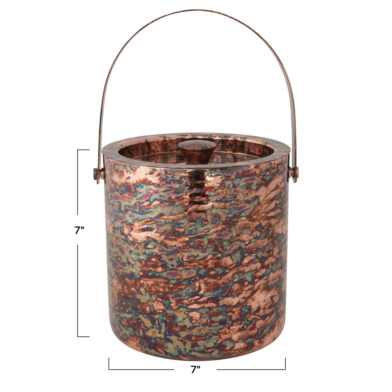 Catalog Name: 7" Round x 7"H 3 Quart Hammered Stainless Steel Double-Walled Ice Bucket, Oxidized Copper Finish