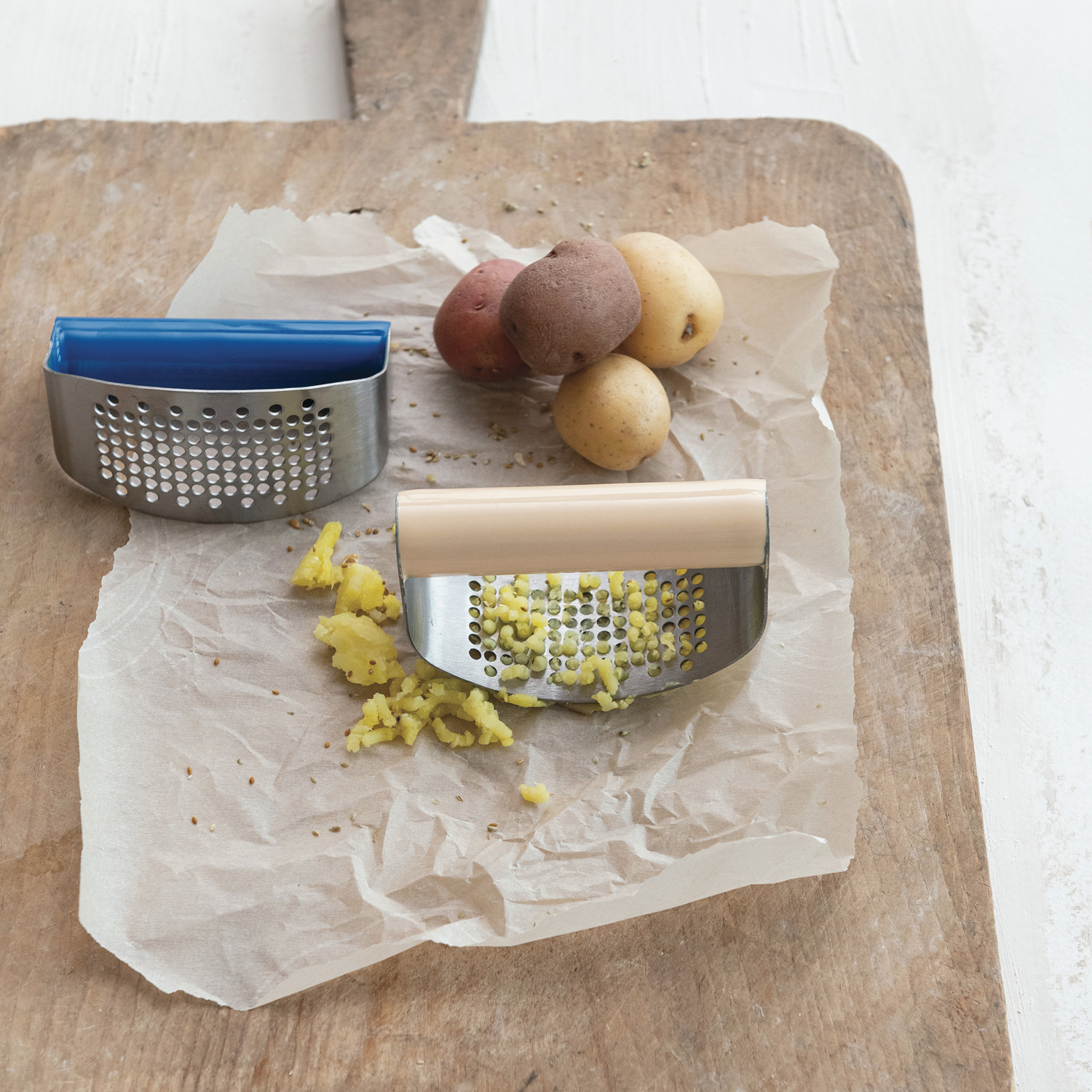 Stainless Steel Garlic Press w/ Enameled Handle, 2 Colors