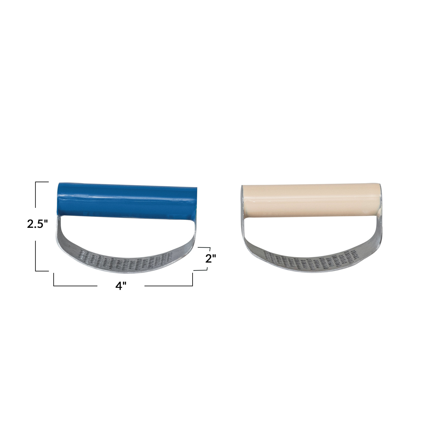 Catalog Name: 4"L x 2"W x 2-1/2"H Stainless Steel Garlic Press w/ Enameled Handle, 2 Colors