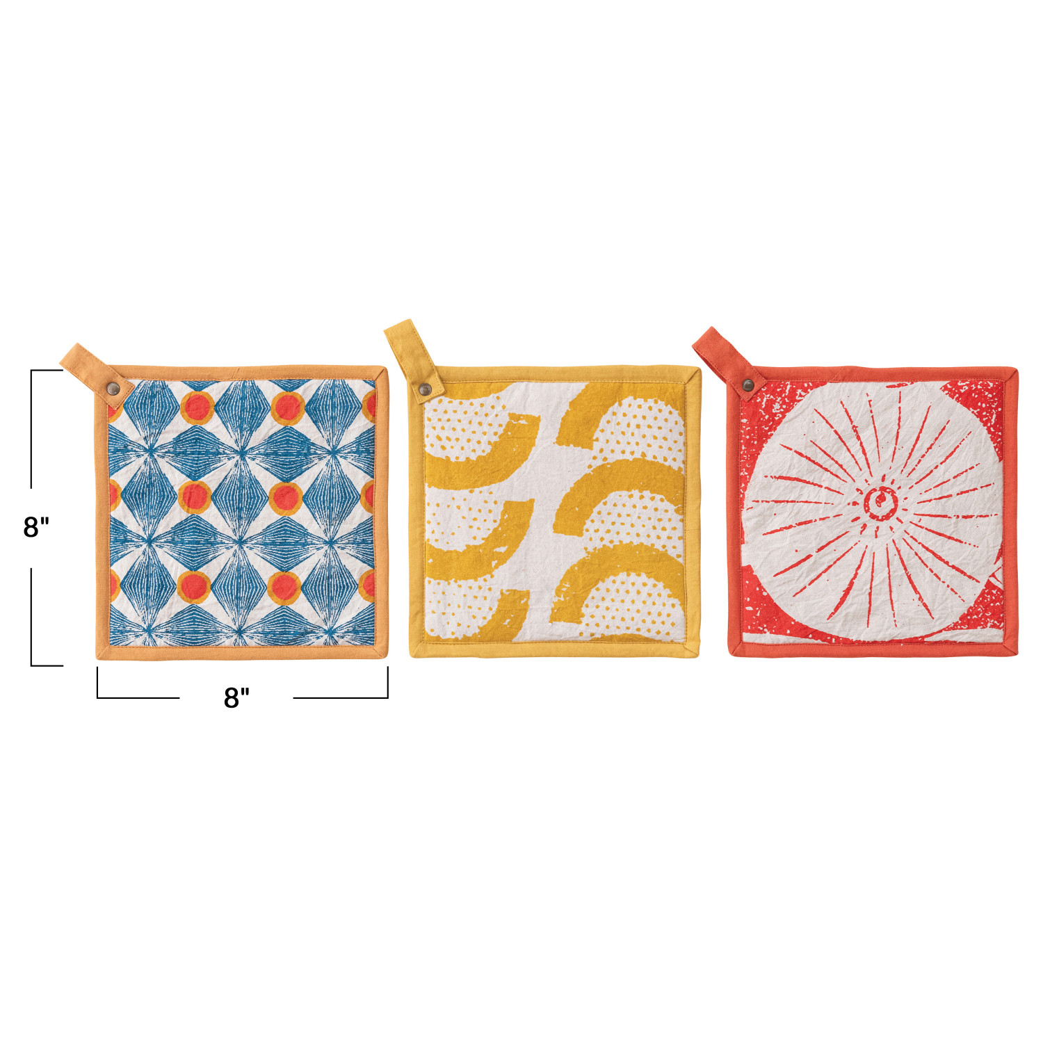 Catalog Name: 8" Square Cotton Pot Holder w/ Pattern, Multi Color, 3 Styles