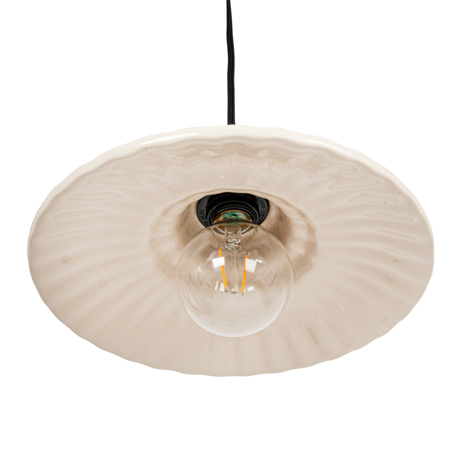 Catalog Name: 10-3/4" Round x 5-1/2"H Stoneware & Metal Pleated Pendant Lamp, 6' Cord, Antique Brass Finish & Cream Color (Hardwire Only)