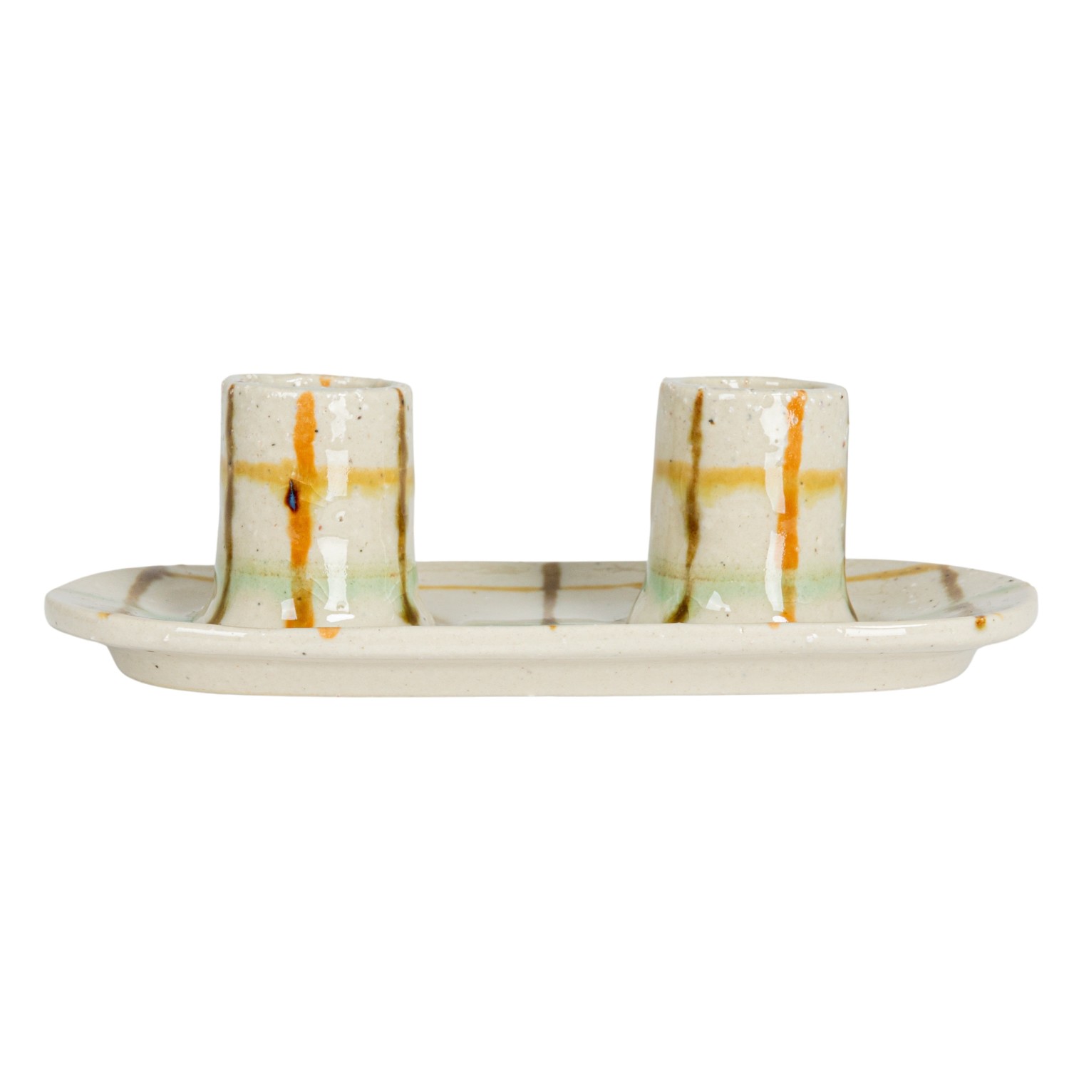 Hand-Painted Stoneware Double Taper Holder (Each One Will Vary)