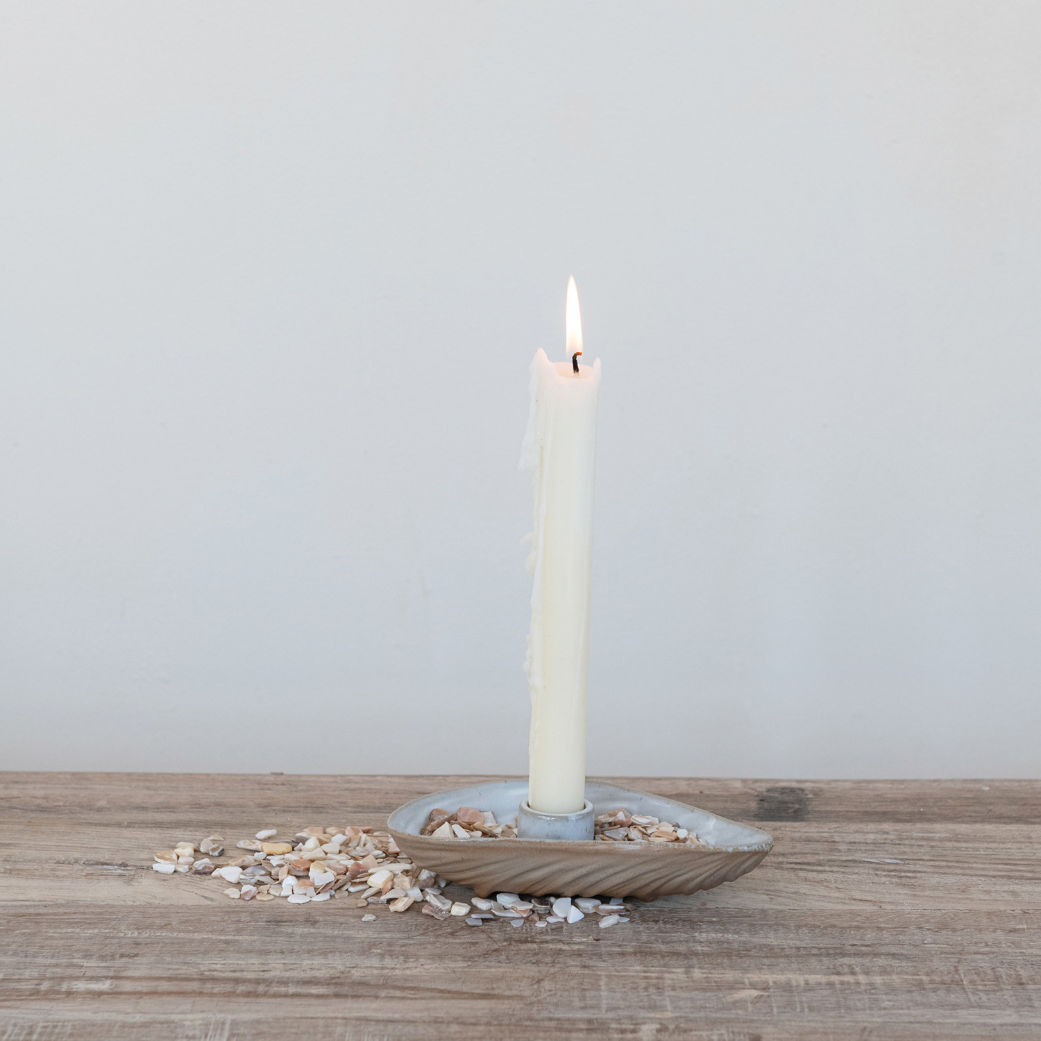Stoneware Oyster Shell Shaped Taper Holder/Dish (Each Will Vary)