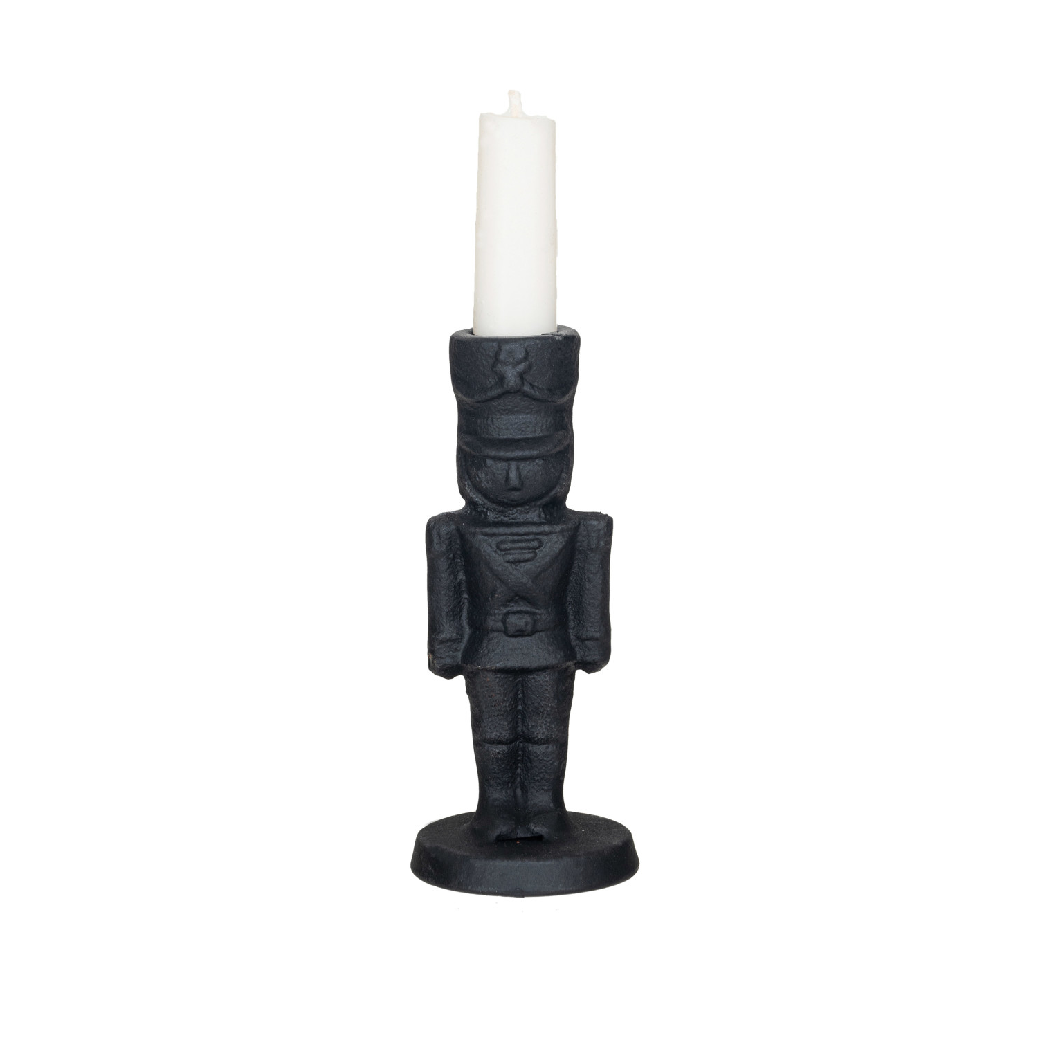 Catalog Name: 2-1/4" Round x 5-1/2"H Cast Iron Soldier Shaped Taper Holder, Black