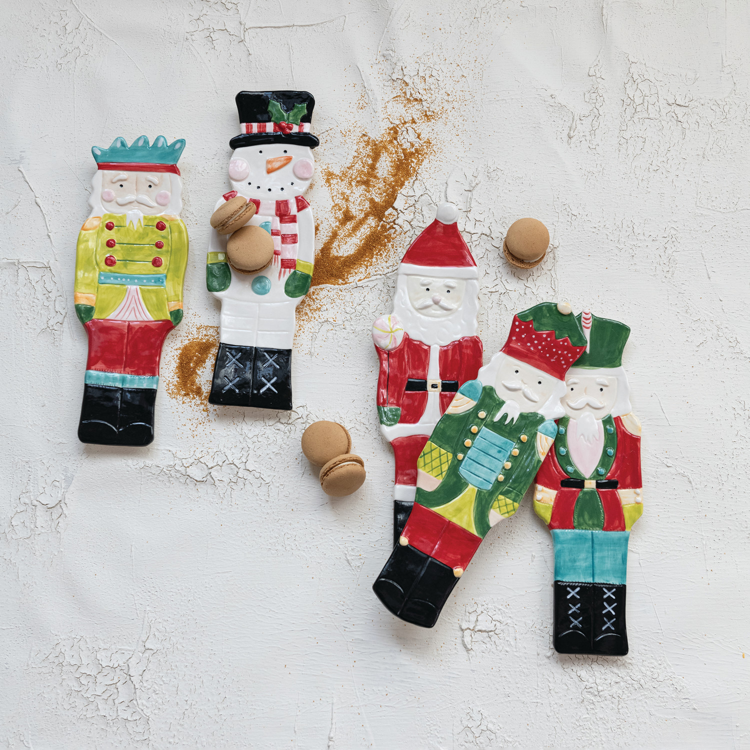 Hand-Painted Stoneware Santa/Snowman Shaped Dish, 2 Styles ©