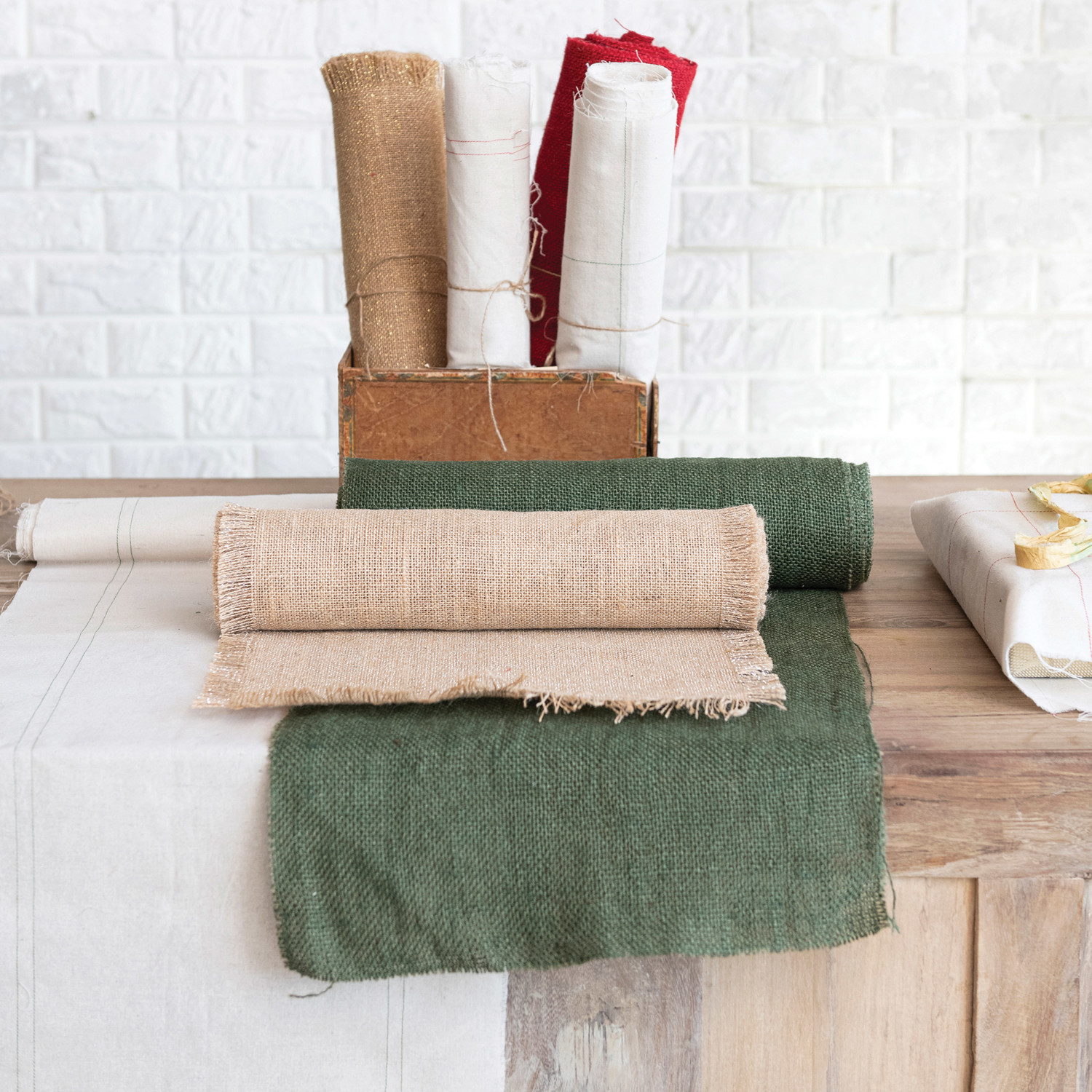 Catalog Name: 6 Yard Woven Torn Cotton Blend Fabric Roll, Natural & Green, 2 Styles