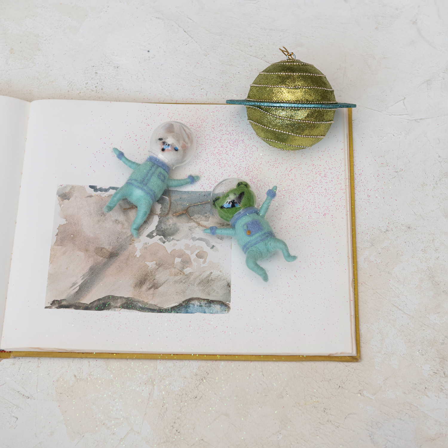 This galactic sparkle plastic planet ornament is a miniature universe one can enjoy looking at. Measuring 5.5 inches in diameter, it's a dazzling representation of the cosmos, complete with sparkling beads and glitter that mimic the twinkling stars. The multicolor design captures the imagination, inviting onlookers on a journey through space. Whether it's part of a festive display or a year-round decoration, this ornament is a celebration of the vast and mysterious universe we live in. This is a perfect choice for anyone who loves graceful and elegant home decor. A round plastic planet ornament, adorned with beads and glitter, showcasing a kaleidoscope of colors for a multi-dimensional effect. This ornament adds a touch of celestial wonder to any decor, perfect for those who dream of the stars. Suited for hanging in a child's room or adding to a space-themed holiday tree.