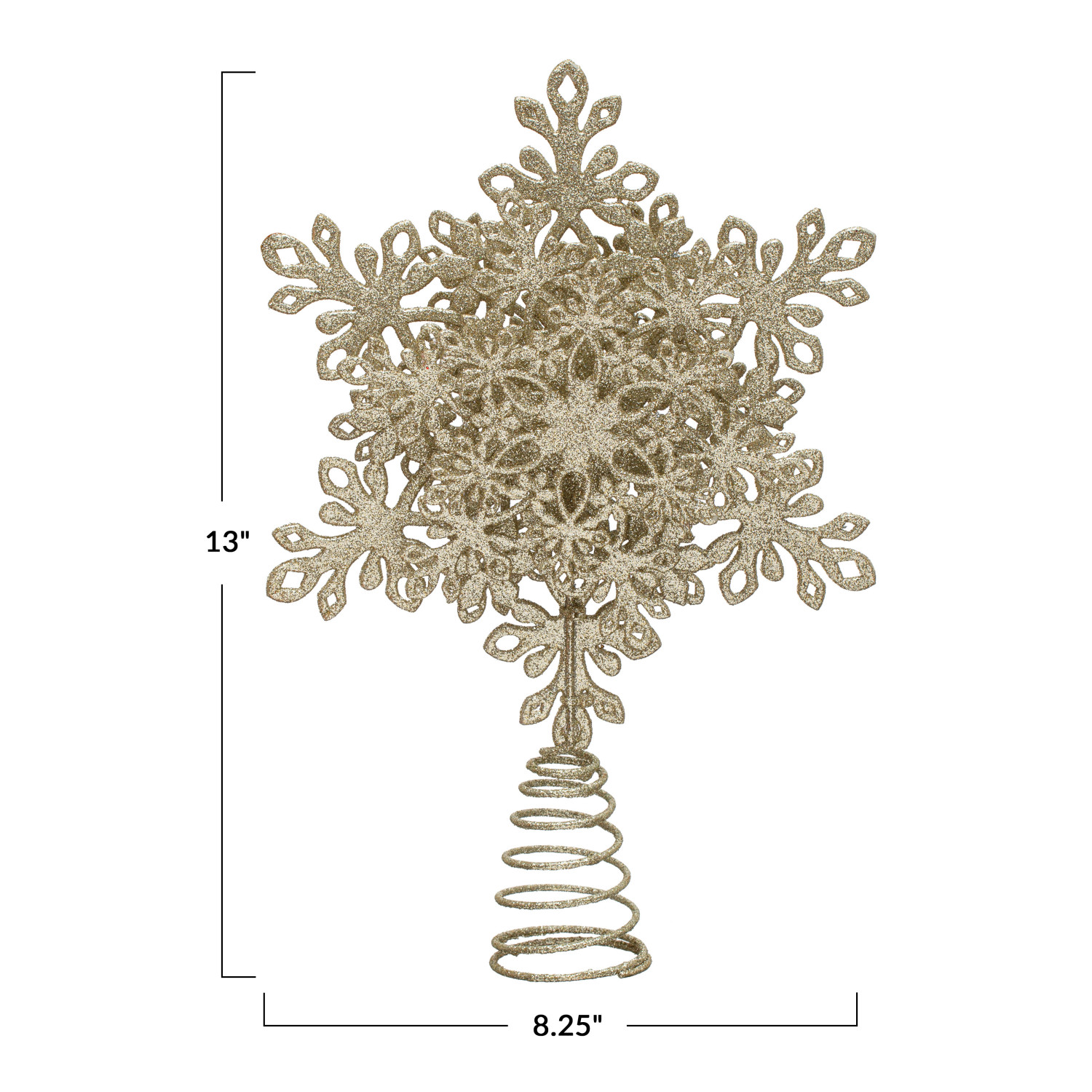 Catalog Name: 8-1/4"L x 2-1/4"W x 13"H Plastic & Metal Snowflake Tree Topper w/ Glitter, Champagne Finish