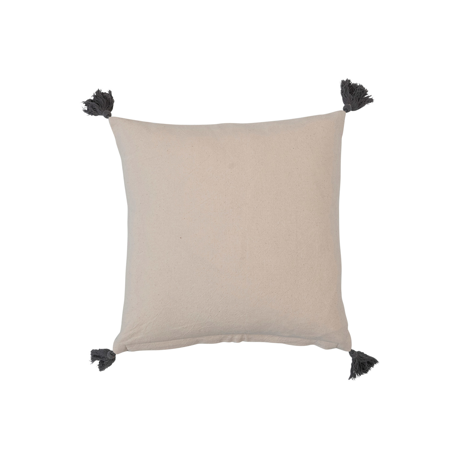 Catalog Name: 18" Square Cotton Printed Pillow w/ Leaf Pattern & Tassels, Natural, Grey & Gold
