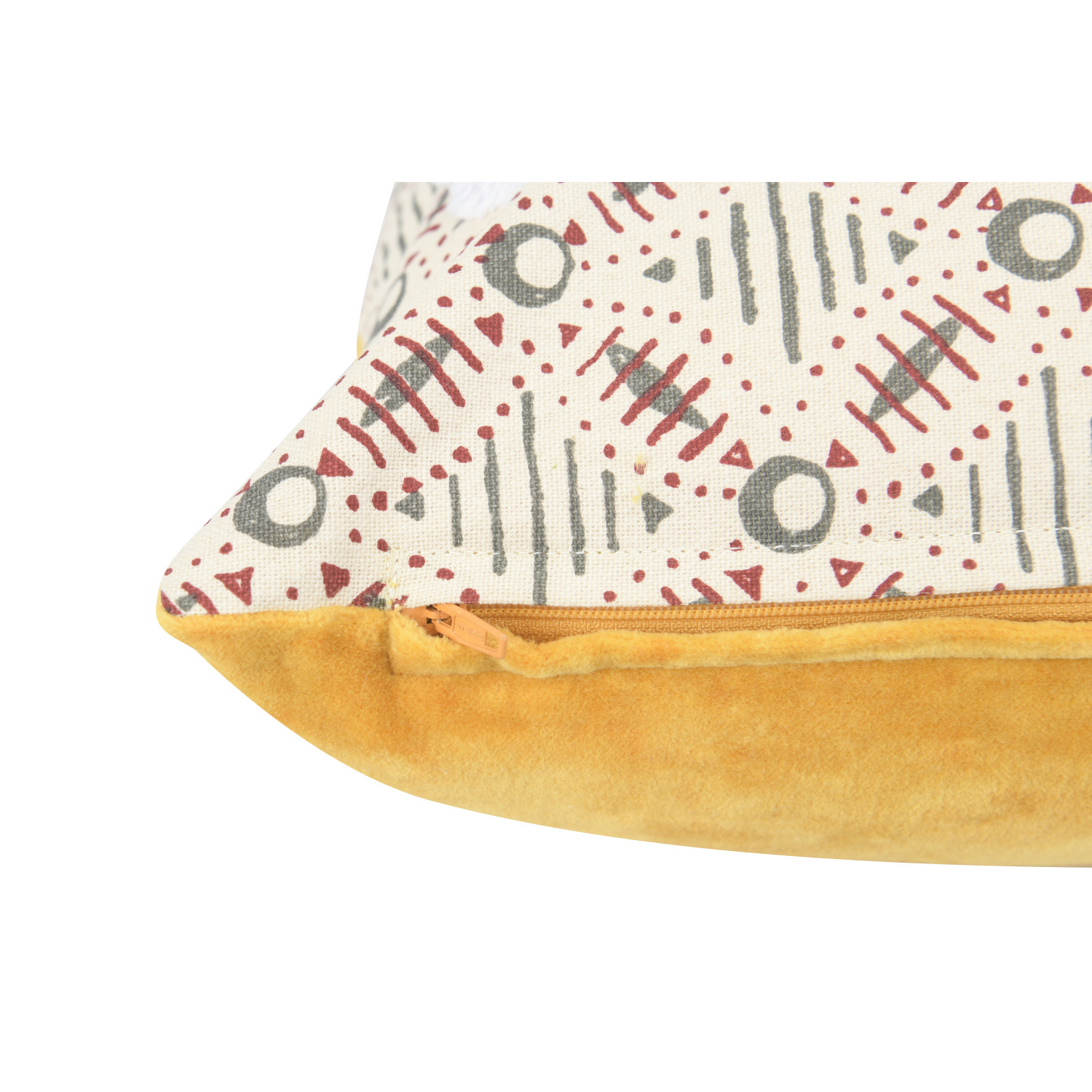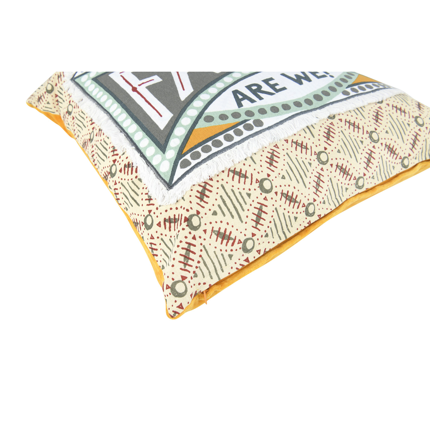 Catalog Name: 18" Square Cotton Pillow w/ Cotton Velvet Back, Embroidery & Fringe "One Happy Family Are We!" ©