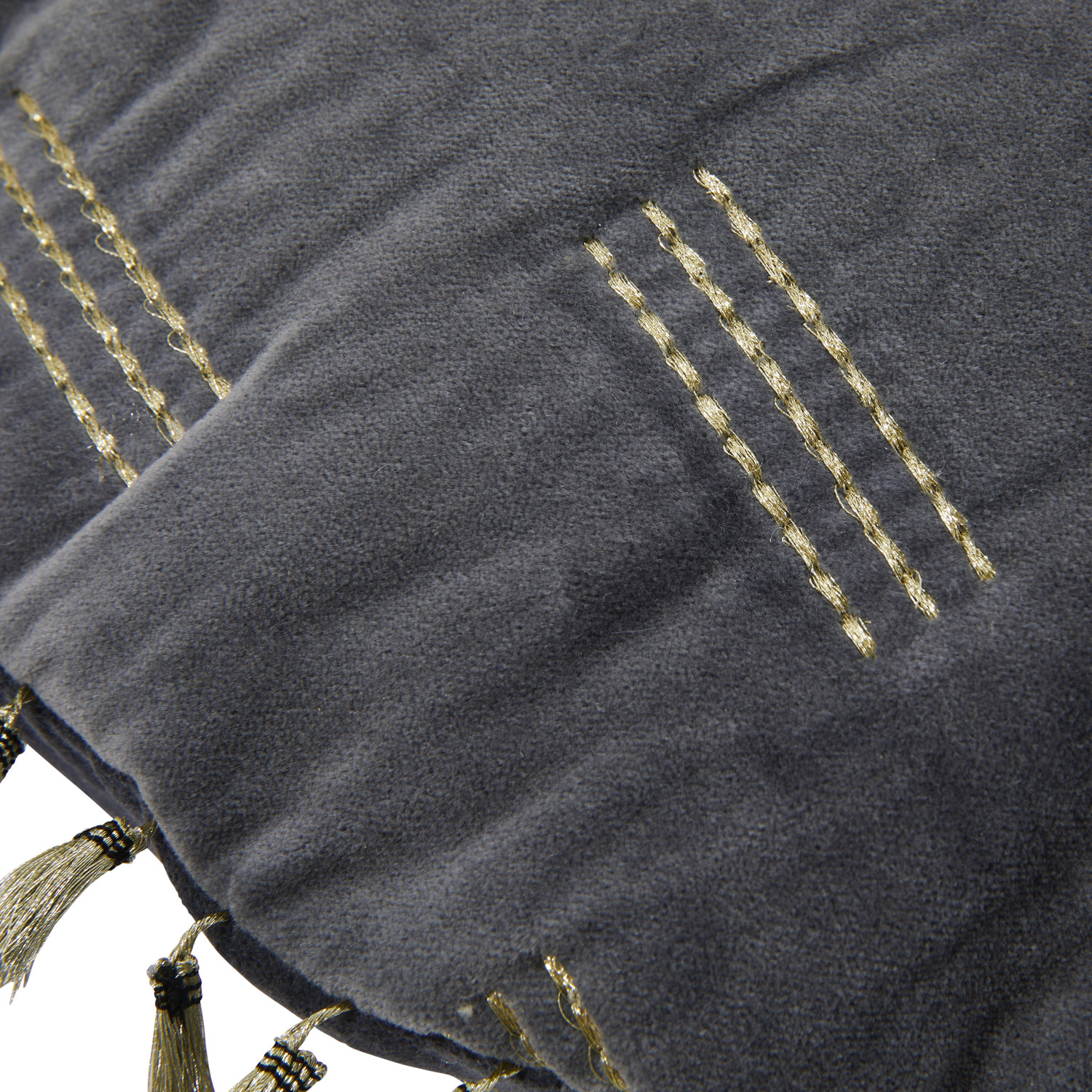 16" Cotton Velvet Pillow with Metallic Embroidery & Tassels