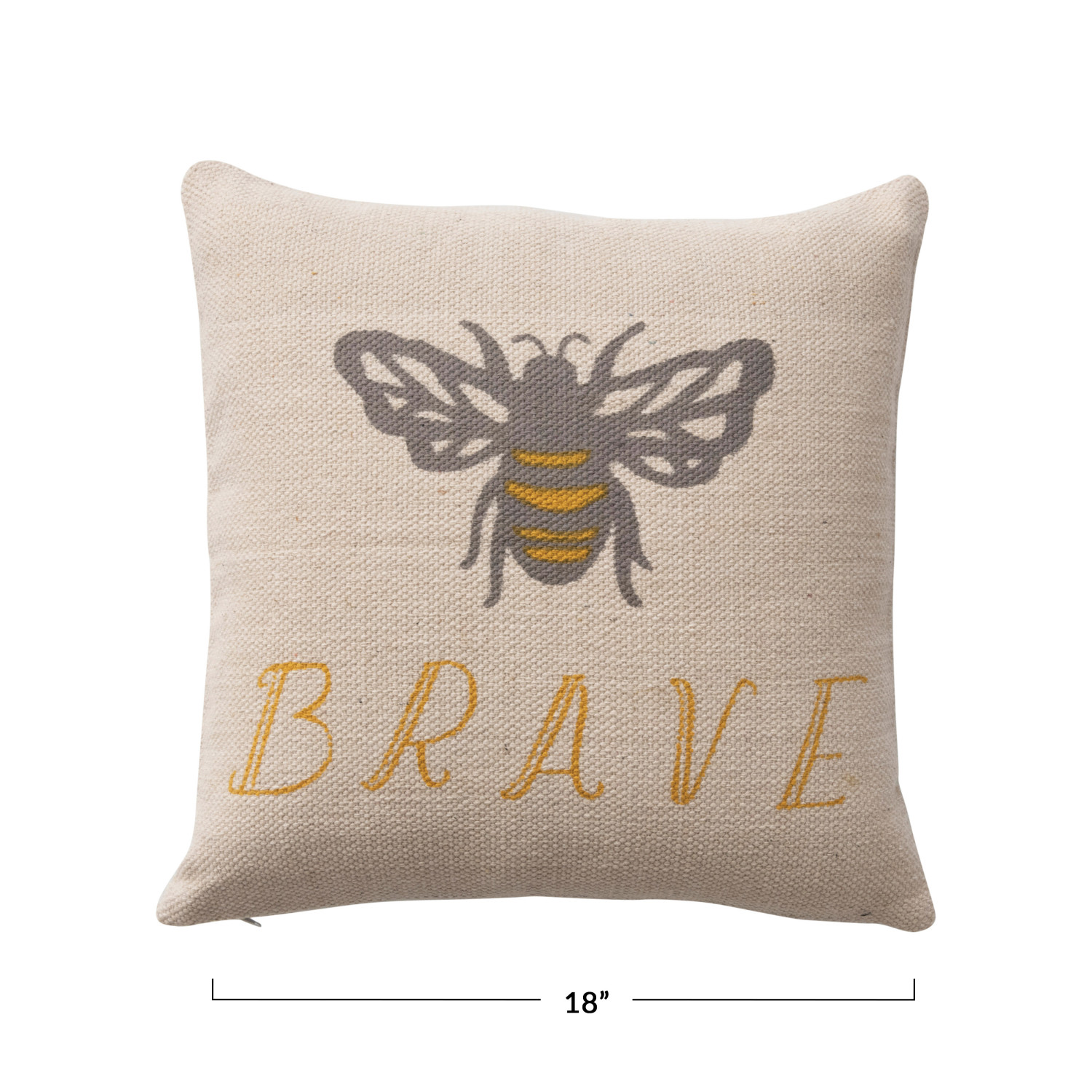 Catalog Name: 18" Square Cotton Pillow w/ Bee "Brave", Multi Color ©