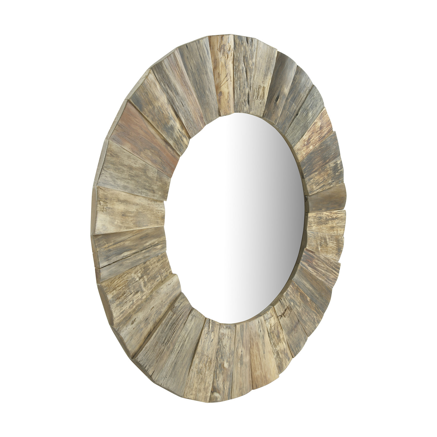 Catalog Name: 47" Round MDF & Wood Framed Wall Mirror, Natural, Truck Ship
