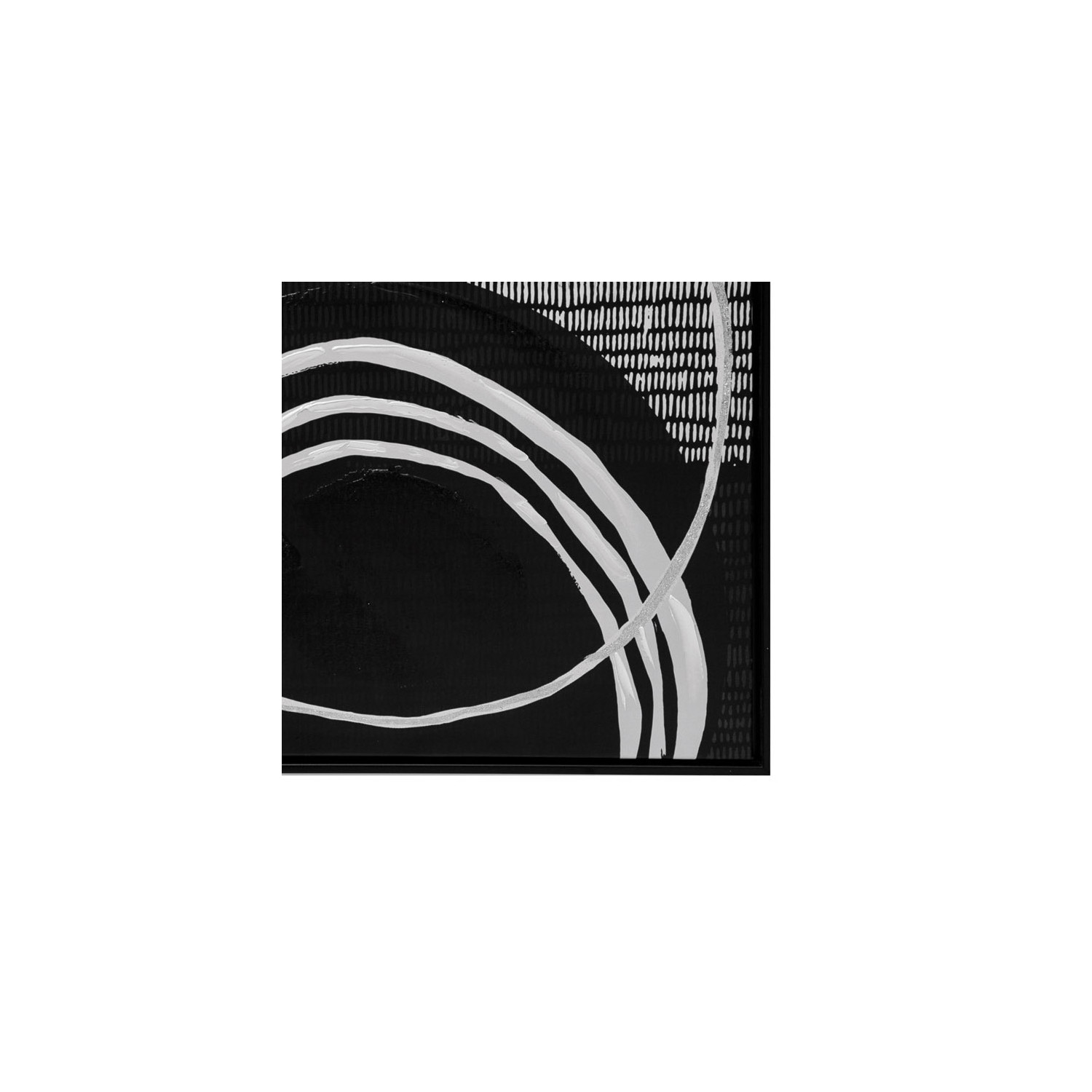 This strikingly modern wall décor showcases a hand-painted abstract design in a sleek, tonal wood frame. Black and white hand-painted abstract wall art in wood frame. Display this stunning wall decor to effortlessly enhance the design of any living space. Made from pine wood, acrylic paint, and canvas.